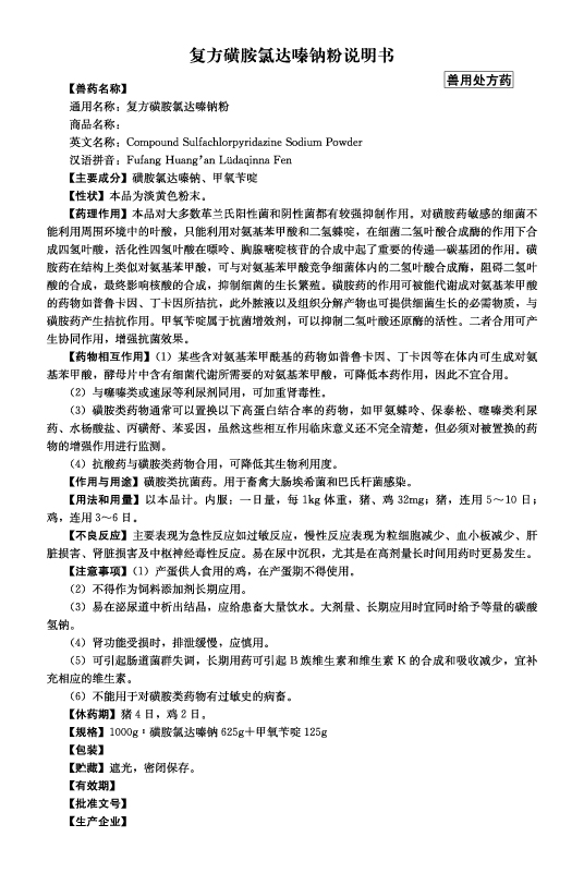 复方磺胺氯达嗪钠粉