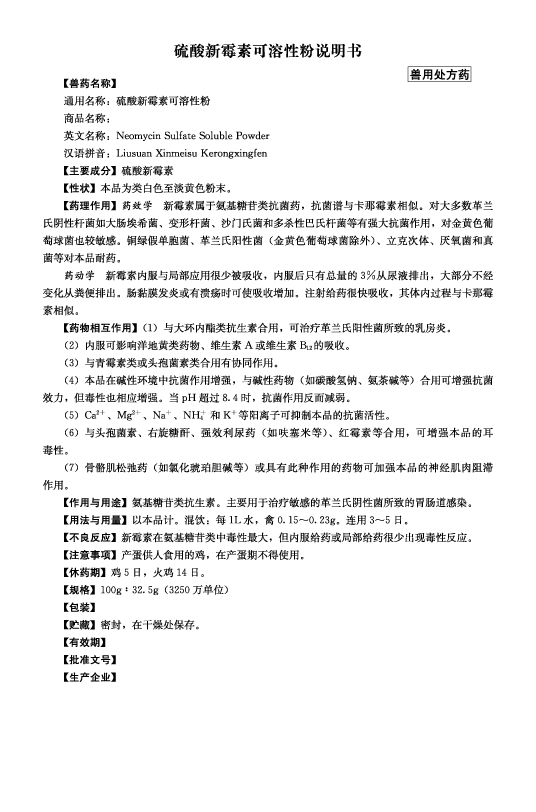用于治疗猪、鸡革兰氏阳性菌、阴性菌引起的大肠埃希菌病、沙门氏菌病、巴氏杆菌病以及支原体引起的呼吸道疾病。