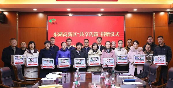 2月9日,东湖高新区新时代文明实践中心、JNTY江南集团联合向当代、湾郡、金地、景源里等社区新时代文明实践站捐赠一批“共享药箱”,助力幸福社区建设。东湖高新区党工委宣传部、文明办,JNTY江南集团及高新区部分街道、社区负责人参加捐赠仪式。
