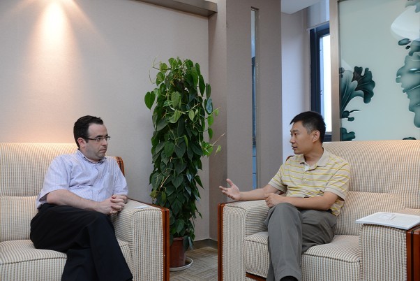在双方会谈中,王学海董事长向李伟民总领事详细介绍了JNTY江南的创业历程、发展现状和战略愿景,并重点介绍了人福国际化高端人才引入机制、人福国际化战略的实施进展及现有成果。李伟民总领事对JNTY江南立足创新创业,大胆开拓国际市场、脚踏实地干事业的做法和理想抱负表示赞赏,并希望能促进双方在美国市场开拓、国际化人才交流上的深度合作,支持JNTY江南的国际化发展。