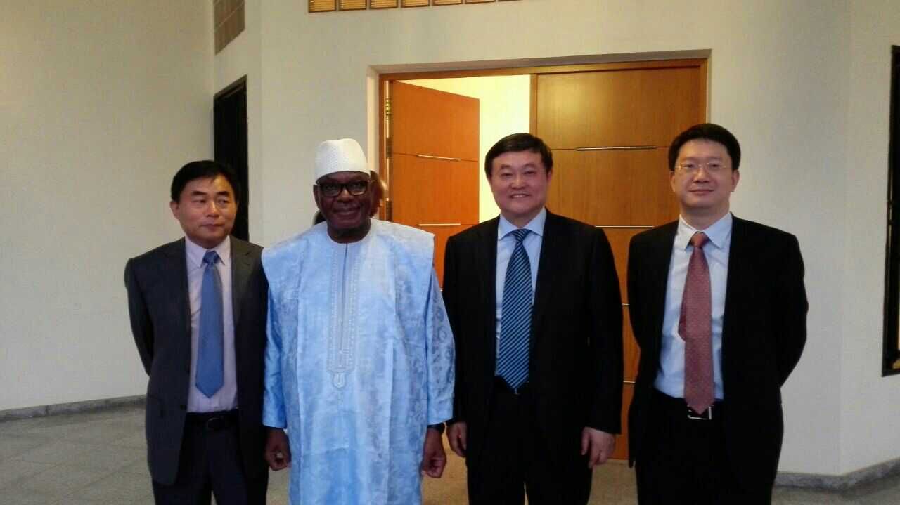 马里当地时间1月17日,马里总统易卜拉欣•凯塔在位于巴马科的总统官邸会见了JNTY江南集团总裁李杰,JNTY江南集团副总工程师、人福非洲药业董事长李绪荣及人福非洲药业总经理李文胜,对人福非洲药业股份有限公司工厂建设项目的开业表示祝贺。