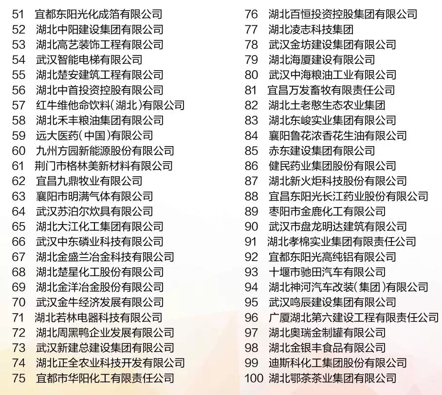 2017湖北民营企业百强榜单