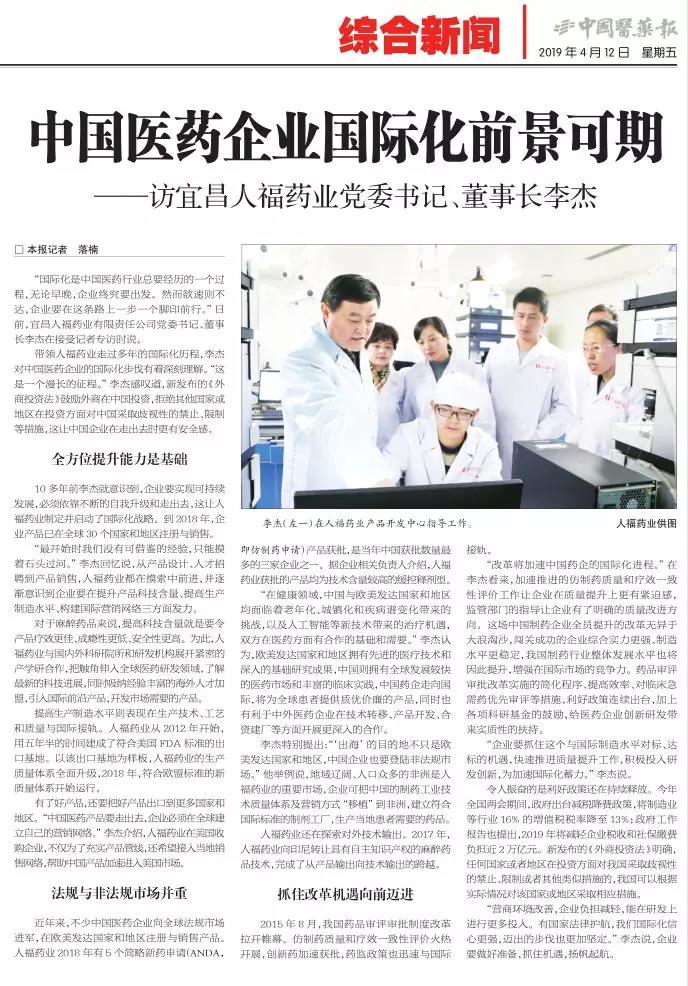 有了好产品,还要把好产品出口到更多国家和地区。“中国医药产品要走出去,企业必须在全球建立自己的营销网络。”李杰介绍,宜昌人福药业在美国收购企业,不仅为了充实产品管线,还希望接入当地销售网络,帮助中国产品加速进入美国市场。